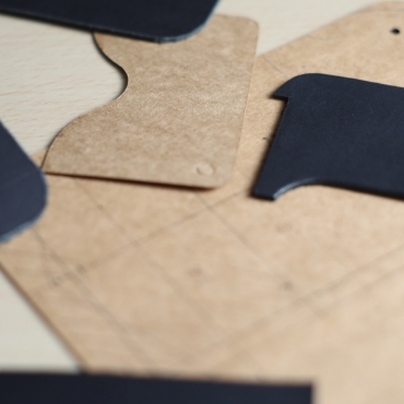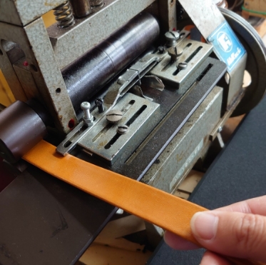 皮や生地の裁断、打ち抜き、コバ抜き、糊付けやへり返し、